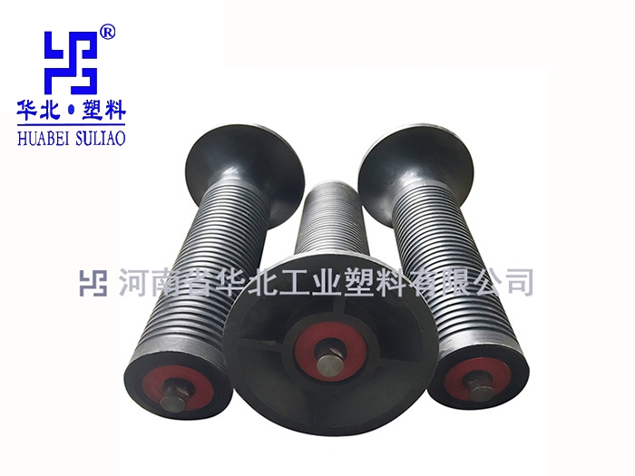 托辊生产厂家(河南华北工业塑料有限公司)生产的立辊又叫挡辊或者翼辊,立辊主要与调心支架连接,是非金属托辊中的调心托辊使用的一种产品,立辊安装在输送带的两侧,防止输送带发生跑偏。是胶带发生跑偏时,其中的一侧立辊受挤压,立辊通过运动杆绕旋转机构上的转轴旋转,转轴带动拉杆旋转,终拉杆推动整个托辊组旋转一个角度,使得胶带运行平稳可靠,由于采用的是非金属材质,辊筒耐用,调心效果显著,且结构简单,完全可以满足现代作业发展的需要。